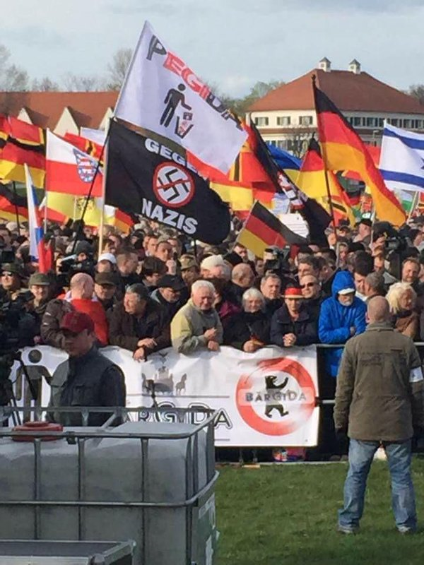 Notice how this major demonstration is fronted by an anti National Socialist Judeoommunist logo. One more proof PEGIDA is a Systemic Zionist front. DEMOCRACY: